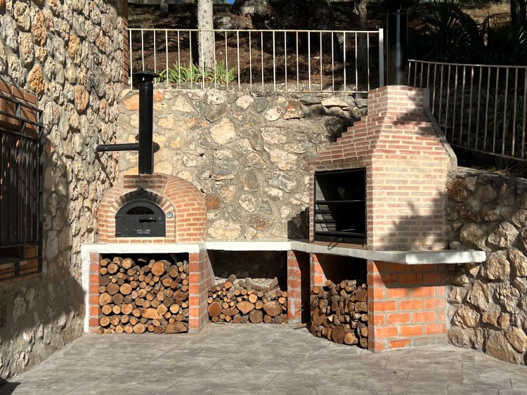 Al lado de la casa en una zona dedicada una barbacoa de artesanal para 14 personas y Horno a Leña para 1 lechal y medio o 3 pizzas.